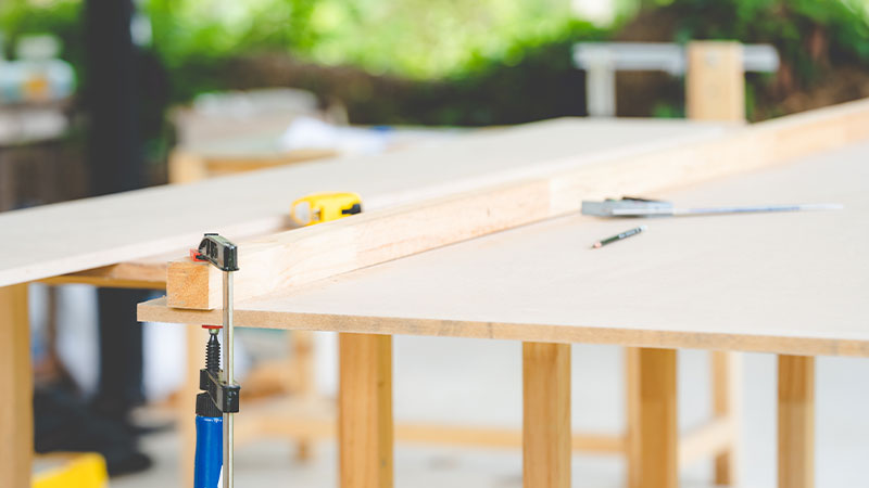 Nous choisissons les matériaux selon la durabilité et le rendu attendu (bois massif, contrecollé, mélaminé). Les finitions (huile, vernis, peinture) sont réalisées pour résister à l’usage et apporter l’esthétique souhaitée.